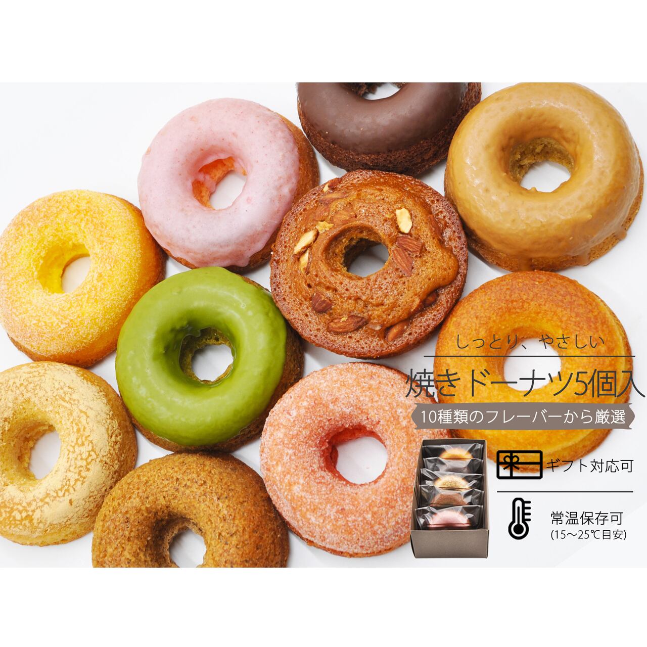 味はもちろん、香りや食感の異なる彩り豊かな焼きドーナツは、ご自宅のティータイム、贈答品、お中元やお歳暮など季節のご挨拶品としてもピッタリです。